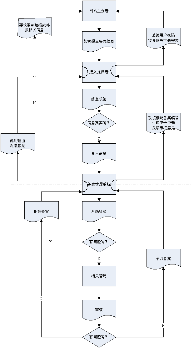 (二)接入提供者對(duì)網(wǎng)站主辦者提交的信息進(jìn)行核實(shí),在確認(rèn)信息真實(shí)、準(zhǔn)確的前提下將ICP備案信息導(dǎo)入“備案管理系統(tǒng)”;如存在不真實(shí)、不準(zhǔn)確的信息,接入提供者要求網(wǎng)站主辦者重新填報(bào)或補(bǔ)充相關(guān)信息。