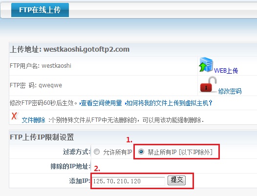5. 當(dāng)看到下面的提示頁(yè)面之后,表示主機(jī)的FTP只有列表內(nèi)IP地址可以訪問(wèn)了,看下圖: