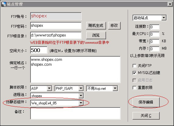 3、如果您的站點開始設(shè)置了偽靜態(tài),請點擊“編輯站點”,再點保存編輯即可。