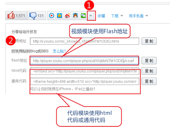 優(yōu)酷的代碼 如果需要視頻在iphone、ipad上播放請使用通用代碼 以土豆為例