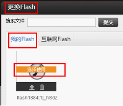 會彈出以下窗口“更換視頻”并打開文件夾中的Flash 選擇“我的Flash”和“互聯(lián)網Flash”, 點擊“我的Flash”并從文件夾中選定一個Flash文件,點擊“選擇使用”即可直接套用,保存后可預覽效果。如將來需要更換Flash,可以直接點“更換Flash”鍵操作。