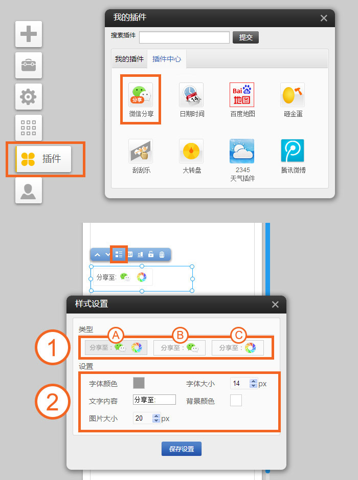 2 支持文字顏色,字體大小,文字內(nèi)容 ,圖片大小,背景顏色設(shè)定可通過調(diào)整字體大小和圖片大小來設(shè)置插件的寬度和高度