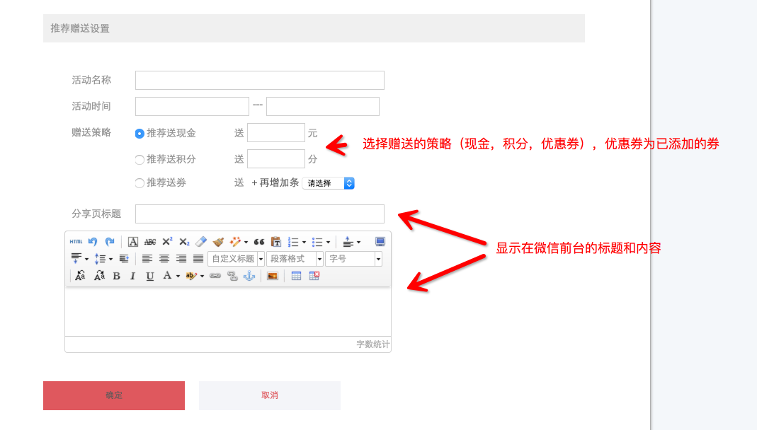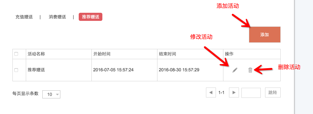活動設(shè)置主要包括推薦贈送,充值贈送和消費贈送 活動所有的頁面結(jié)尾如下所示