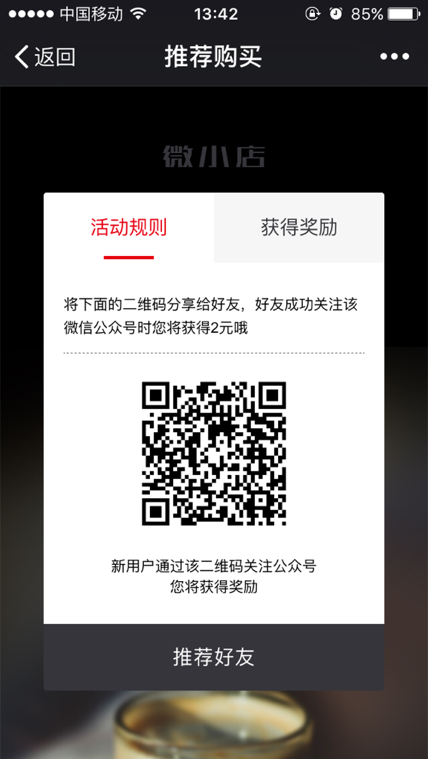 推薦贈送是指當(dāng)把該公眾號二維碼分享給朋友并且朋友關(guān)注時將會獲得該獎勵。(有幾個好友掃二維碼關(guān)注公眾號就獲得幾次獎勵) 1、添加推薦贈送