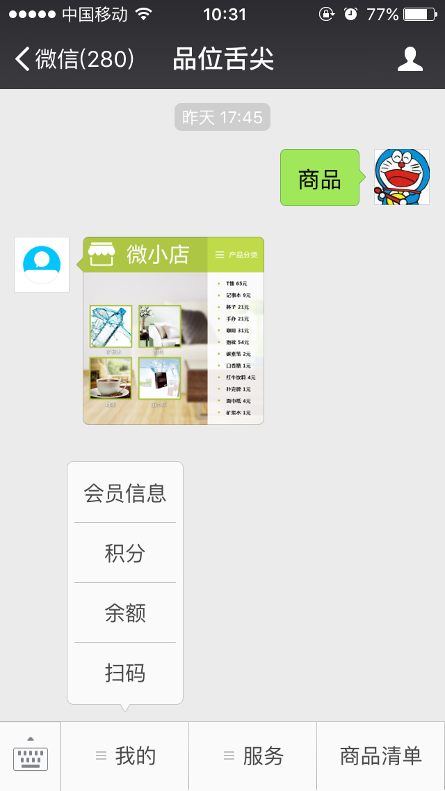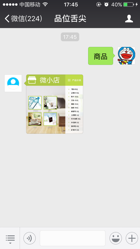 前臺(tái)微信顯示如下