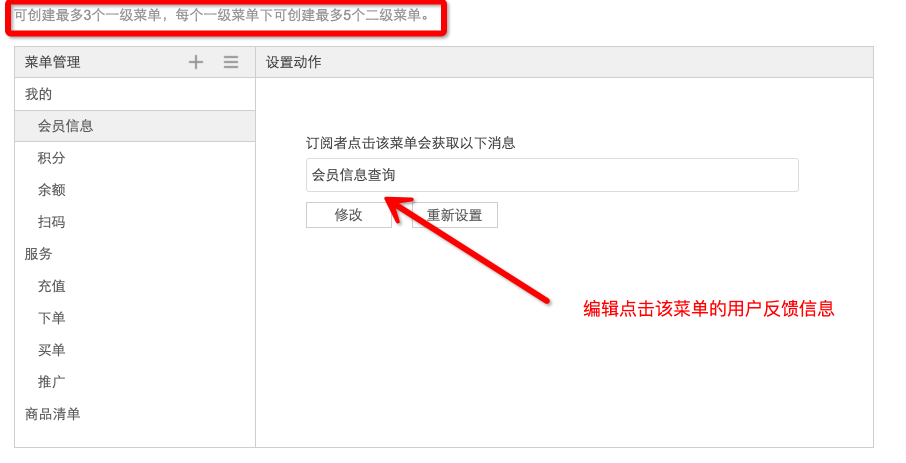 3、自定義菜單自定義菜單是指微信前臺(tái)底部的菜單,用戶可以通過(guò)點(diǎn)擊菜單打開相應(yīng)的頁(yè)面或者獲得相應(yīng)的回復(fù)信息。