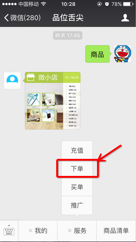 前臺下單即用戶在微信前段完成點單支付的操作
