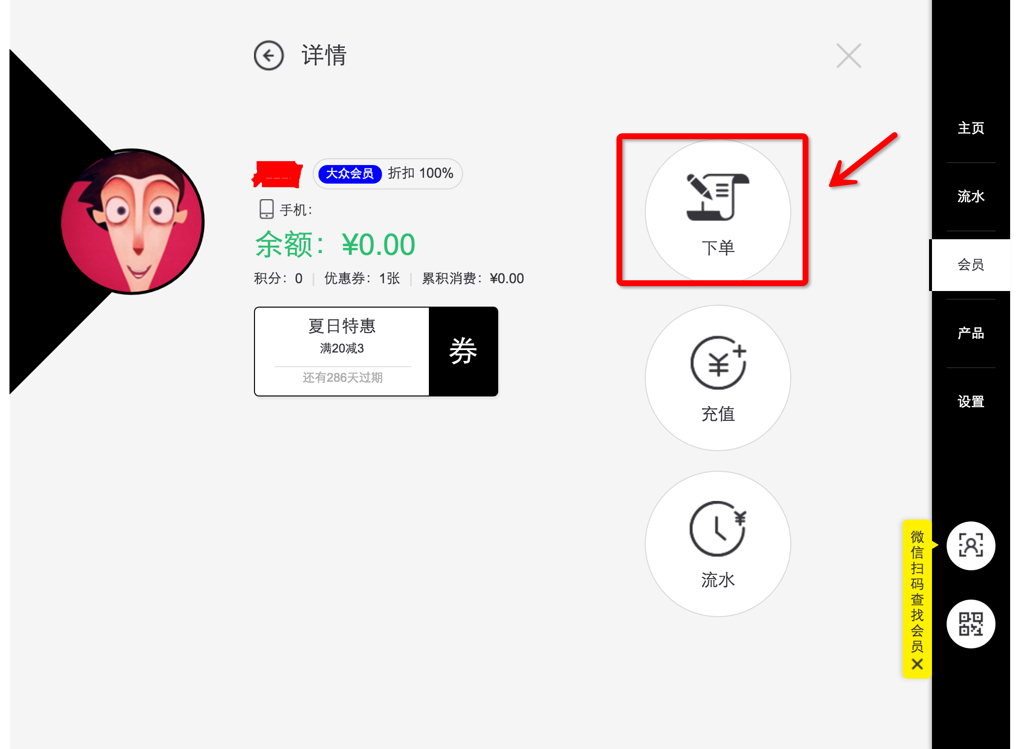 后臺下單即進入某個會員的詳細頁面進行下單,如圖
