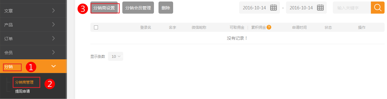 2、后臺依次點(diǎn)擊 分銷-》分銷商管理-》分銷商設(shè)置