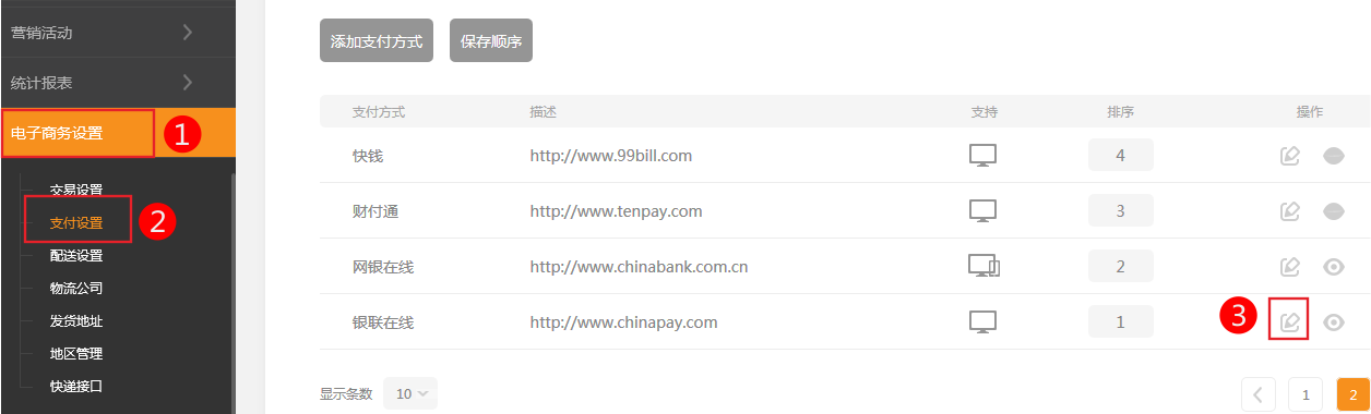 1.依次點(diǎn)擊電子商務(wù)設(shè)置->支付設(shè)置在銀聯(lián)在線中點(diǎn)擊編輯。