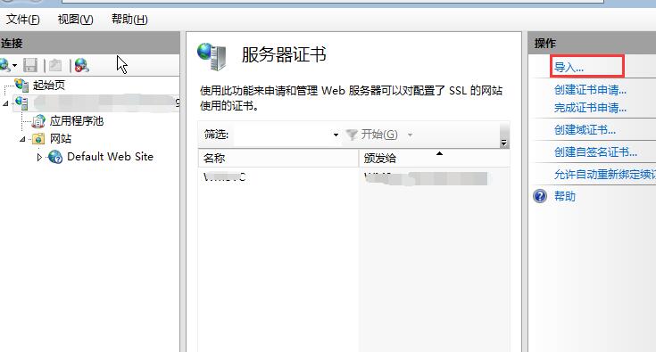 雙擊打開服務(wù)器證書后,點(diǎn)擊右則的導(dǎo)入