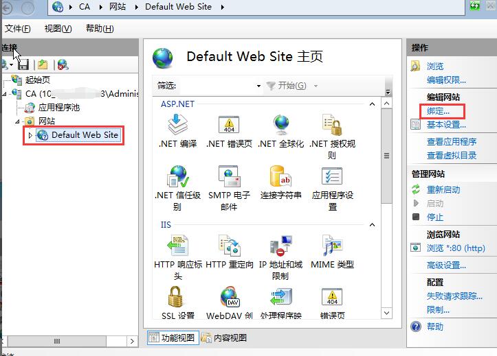 點(diǎn)擊網(wǎng)站下的站點(diǎn)名稱,點(diǎn)擊右則的綁定