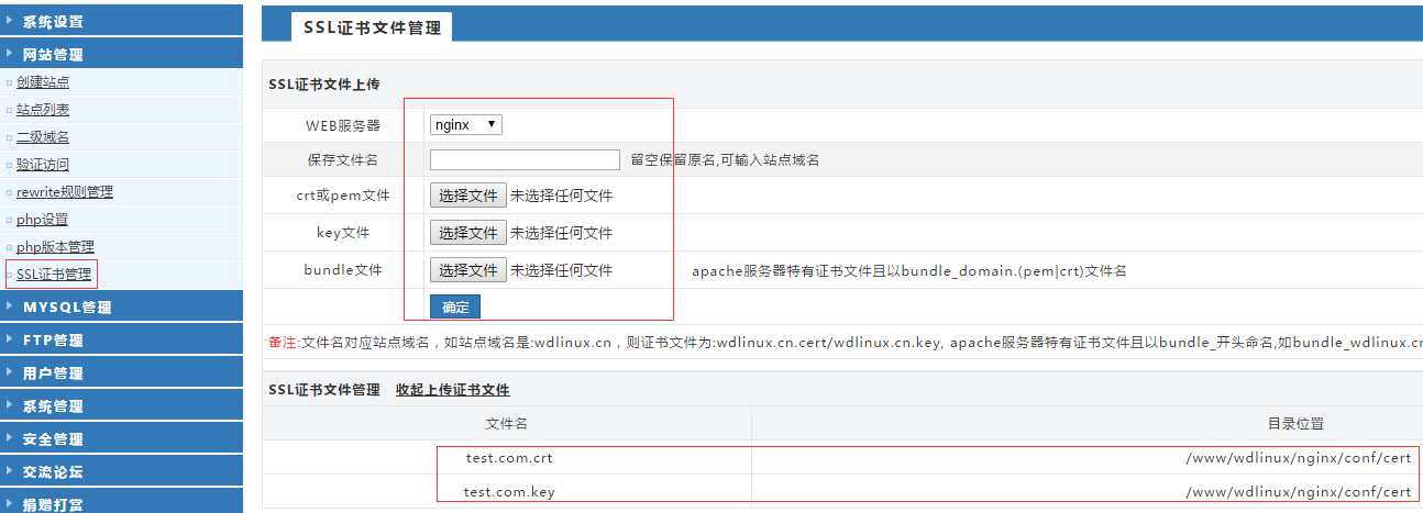 寶塔面板上編輯站點(diǎn),點(diǎn)擊SSL,用記事本打開下載后的證書,復(fù)制對應(yīng)內(nèi)容,保存然后重啟web服務(wù)。 wdcp面板: 一、安裝我司默認(rèn)wdcp環(huán)境,分v3.2和v2.5教程 說明:nginx web引擎可部署一個或多個站點(diǎn),并且支持apache+nginx混合模式,不影響之前apache引擎的任何設(shè)置(如偽靜態(tài)、.htaccess規(guī)則等)。以下教程基于linux+apache+nginx 引擎。 1.wdcp v3.2(linux+apache+nginx)系統(tǒng)模板為: 目前wdcp v3.2默認(rèn)為nginx+apache引擎,用戶登錄wdcp界面可自助,很簡單的設(shè)置。 A、首先申請》下載》解壓SSL證書到本地電腦。然后登陸wdcp控制面板,點(diǎn)網(wǎng)站管理》SSL證書管理》上傳證書crt和key,證書名稱與建立的站點(diǎn)名一致,如圖: