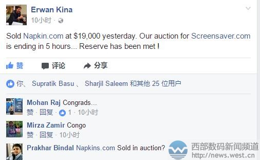 “餐巾紙”域名以13萬元結(jié)拍!“綠色藤蔓”賣出五位數(shù)美元西部數(shù)碼(west.cn)6月2日消息,小編在社交媒體上發(fā)現(xiàn),英文域名napkin.com和Greenvines.com分別以19,000美元和11,000美元成交了,后者乃是海外知名投資人Mike Mann所售。