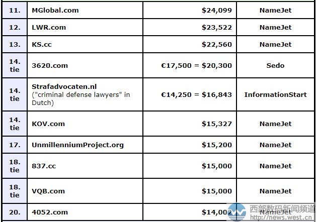 排名第二的是域名XLC.COM,成交價為49,100美元,約合人民幣32萬元。這個三聲母域名注冊于1996年,對應有“小藍車、小懶蟲、修理廠、新浪潮、新旅程、喜樂城”等含義,可廣泛用于搭建共享單車、汽修網(wǎng)站、旅游以及地產(chǎn)等平臺。
