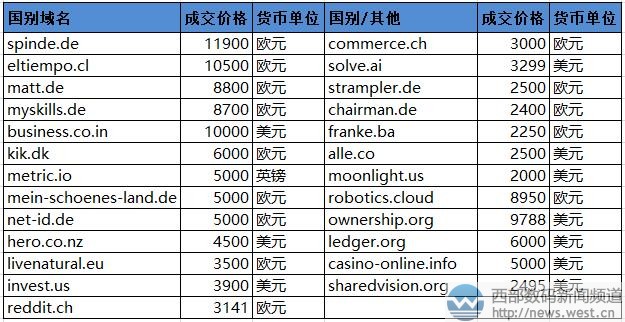 國別域名方面,德國國家域名繼續(xù)領(lǐng)銜,本期排在第一的是spinde.de,成交價為11,900歐元,對應有一款名為Spin.de的手機軟件。Matt.de(表面暗淡的)、myskills.de(我的技能)等德國域名也分別拍除8800歐元、8700歐元。 除此以外,智利域名eltiempo.cl拍了1.05萬歐元,相關(guān)域名eltiempo.com/.es都被啟用了。印度域名business.co.in拍了1萬美元。 本文轉(zhuǎn)載自新聞資訊,原文鏈接:領(lǐng)跑sedo榜!英文域名spend.com拍出182萬元!