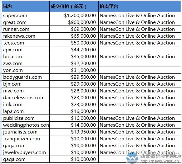Namejet 2月成交數(shù)據(jù):“超級”域名759萬元結(jié)拍!“偉大”緊隨其后3月5日消息,近日國外Namejet平臺公布了其二月份域名銷售情況,以五位數(shù)美元成交的域名共有22個,其中成交價格zui高的是super.com,以1,200,000美元在線結(jié)拍,約合人民幣759萬元。 域名Super.com注冊于1997年,其“超級、極好、痛快”等含義通用常見,是日常生活中比較喜聞樂見的詞語。該域名對應(yīng)有不少優(yōu)質(zhì)終端,比如:意大利高端太陽眼鏡、中石化潤滑油公司旗下super(賽派潤滑油)、佳人日化旗下品牌super(賽派)、賽派皮具super等。之前我們報道過域名super.com在namescon大會上結(jié)拍,隨后在2月份完成交易。 隨后是同樣在namescon會議上以900,000美元結(jié)拍的域名great.com,約合人民幣567萬元。該域名注冊于1997年,具有“偉大的、優(yōu)異的、重大的、很好的”等意思,含義正面積極。由于沒有特定的行業(yè)指向性,域名great.com適用于游戲、電商、娛樂、金融等多個領(lǐng)域。 域名runner.com以69,000的結(jié)拍價排在第三,約合人民幣43.6萬元。該域名是“賽跑者、跑步者”的意思,在體育及健身運動領(lǐng)域用得較多,因此很適合搭建體育賽事網(wǎng)站、跑步軟件等,應(yīng)用價值不錯。據(jù)whois信息顯示,runner.com目前已經(jīng)轉(zhuǎn)移到了Strong Incorporated公司民下,背后買家疑似Adam Strong。 緊隨其后的是有“假新聞”之意的英文組合域名fakenews.com,成交價為65,000美元,折合人民幣41萬元。據(jù)Alexa排名顯示,此前fakenews.com在美國排名為304,789,搜索訪問量還不錯,很適合搭建新聞資訊類網(wǎng)站或者辟謠網(wǎng)站。 此外,三字母域名cpx.com、boj.com、zwz.com、yon.com、bjn.com等均五位數(shù)美元成交,其他域名結(jié)拍情況詳見下表: