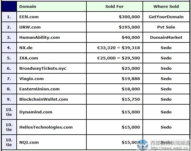域名EEN.COM注冊于1998年,距今已有20年歷史,是“異常教育需要”(exceptional educational needs)的縮寫,也對應(yīng)有歐洲企業(yè)網(wǎng)絡(luò)(enterprise europe network)的首字母縮寫。據(jù)了解,域名EEN.COM的所有者為ANYTHING.COM,經(jīng)由中介完成交易。目前尚不知買家具體身份,但能以近200萬元的價格拿下該域名,實力不凡。 隨后是以195,000美元成交的域名URW.COM,這枚域名被澳大利亞購物中心巨頭Westfield LLC(西田集團)收購,賣家是Telepathy公司,這筆交易的具體金額也在本期DN榜得以公開,高達19.5萬美金,折合人民幣超124萬元。 排在第三的是英文組合域名humanability.com,成交價為40,000美元,約合人民幣25.5萬元。該域名直譯為“人的能力”,可用來搭建人工智能以及公益類網(wǎng)站等。 緊隨其后的是兩聲母域名NX.de,這枚德國國別域名在sedo榜上以39,318美元成交。字母NX對應(yīng)有雷克薩斯,以及任天堂推出的一款游戲平臺。除此以外,NX.de域名可挖掘的含義十分豐富,可應(yīng)用的空間較廣。 除此以外,榜單上也還有不少的好米,如:三字母ixa.com以29,500美元成交;英文域名broadwaytickets.nyc拍出25,000美元,viagio.com、nqi.com、Global.global、Gold24.com、timedia.com等域名均拍出不錯價格。 來源西部數(shù)碼新聞資訊:DN榜:多個三字母域名成交!ENN.COM以191萬元奪魁