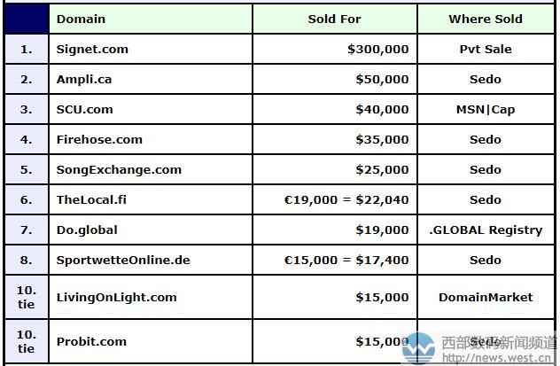 來源西部數(shù)碼新聞資訊,原文鏈接:DN榜:英文域名signet.com近200萬元奪冠!國別域名表現(xiàn)不俗!