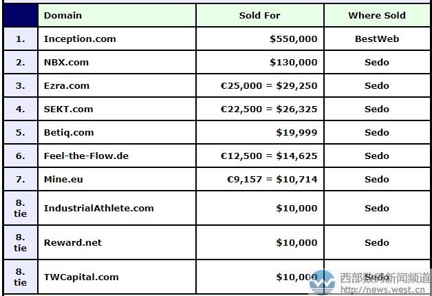 來源西部數(shù)碼新聞資訊,原文鏈接:昂貴的“開端”:英文域名inception以366萬元居DN榜首
