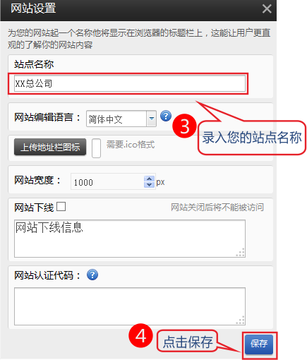 (2)錄入您的站點名稱-保存