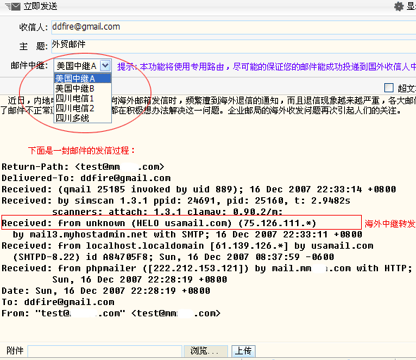 發(fā)往海外(國外)郵件失敗的解決辦法?目前由于種種等原因,中國和國外的郵件通信一片慘像,海外郵件收發(fā)出現(xiàn)退信或丟失可以說是家常便飯。 表現(xiàn)情況一般是:發(fā)往海外的郵件出現(xiàn)退信,提示: Remote host said: 553 61.139.126.* rejected due to spam, contact 480-505-8877 pawel_konopa@wp.pl: 出現(xiàn)這些的情況,主要有以下幾個(gè)原因: 1)被國外的部分運(yùn)營商拒收。國內(nèi)IP被列入黑名單、國內(nèi)大多數(shù)郵局不支持反解析等原因使國內(nèi)郵件被國外很多郵局拒收等; 解決的辦法是:在我司郵件系統(tǒng)里面,點(diǎn)發(fā)郵件>再點(diǎn)“發(fā)送國外郵件”,通過這個(gè)功能可以選擇美國中繼服務(wù)器直接發(fā)到海外信箱,以解決國內(nèi)IP被列入黑名單的問題。發(fā)送國外郵件 暫存在草稿箱 顯示增強(qiáng)功能