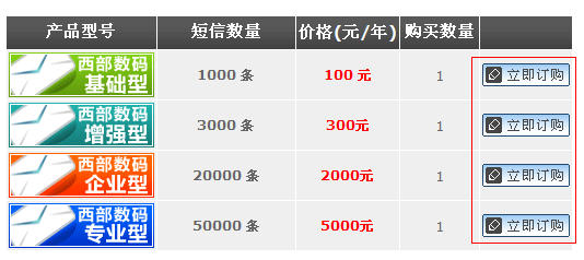 [原創(chuàng)]短信平臺(tái)使用說明1) 打開http://ps-sw.cn/services/sms/ ;頁面中選擇您所需要購買的短信產(chǎn)品型號(hào),點(diǎn)擊后面的"立即購買" 按鈕;