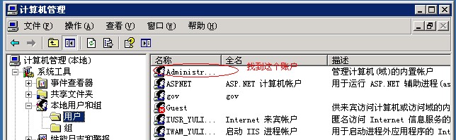 2008系統(tǒng) 右鍵我的電腦--管理 進入后在配置-本地用戶和組-用戶,在右側(cè)找到administrator帳戶: