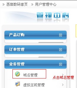 6、回到我司網(wǎng)站的管理中心--業(yè)務管理,點擊“域名管理”
