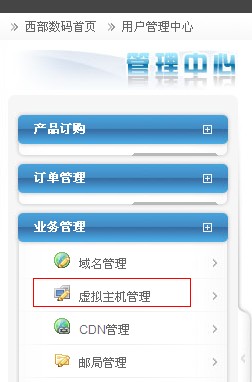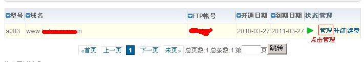 2、找到您需要設置的虛擬主機。點擊“管理”進入虛擬主機管理面板: