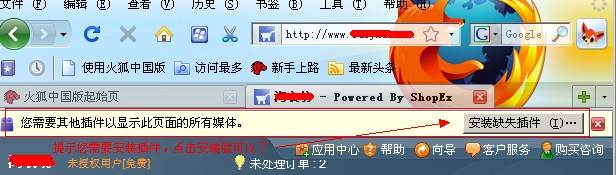比如安裝火狐瀏覽器會進入SHOPEX會自動提示下載插件,如圖: