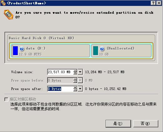 用鼠標將右邊的10G全部包含進去,然后點 是 ,這樣擴展分區(qū)增大了