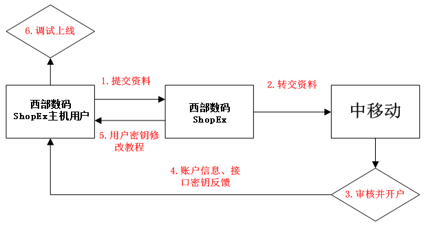 c. 西部數(shù)碼收到申請之后,將統(tǒng)一安排發(fā)往中國移動在線支付中心,由中國移動審核之后,開通支付網(wǎng)關(guān)帳號信息,然后由中國移動安排郵寄合同紙質(zhì)版。整個審核過程大概持續(xù)1周時間。
