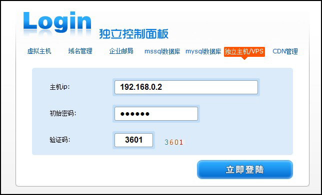 獨(dú)立控制面板(http://www.myhostadmin.net)登陸,如圖: