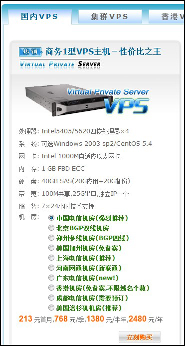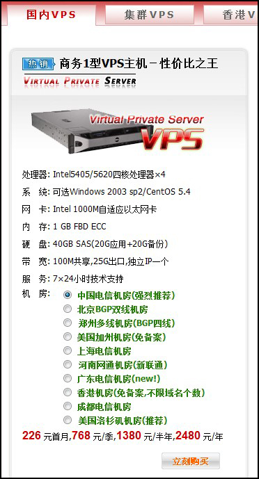 代理平臺(tái)如何開通VPS客戶在代理平臺(tái)開通VPS流程: 首先,客戶登陸代理平臺(tái),在代理平臺(tái)上點(diǎn)擊“VPS主機(jī)”,選擇需要的類型和機(jī)房,點(diǎn)擊“立即購買”。如圖: