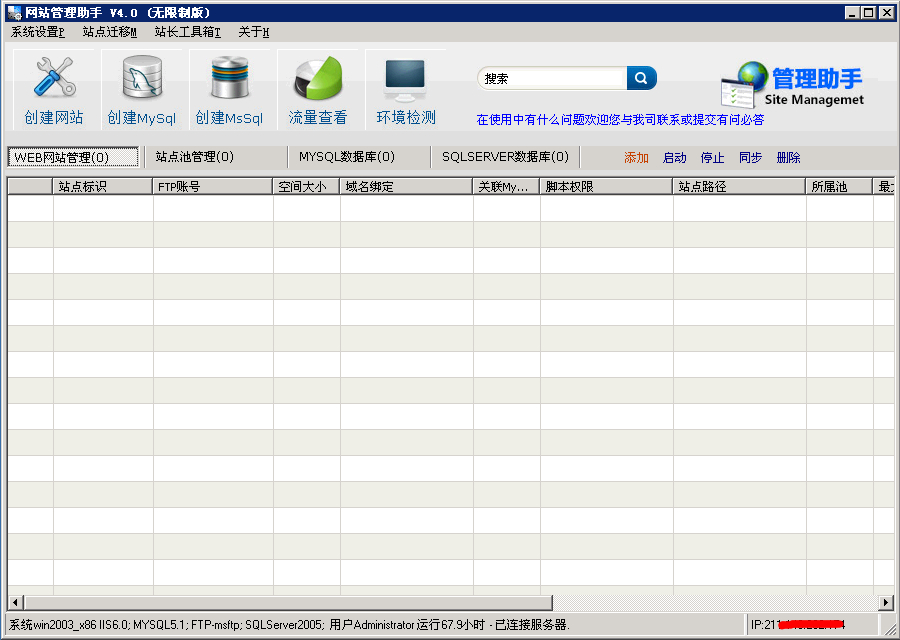 最后點“確認創(chuàng)建”就新建完一個站點了。 提示框提示“MYSQL創(chuàng)建結(jié)果:Ture”表示mysql創(chuàng)建成功,若mysql創(chuàng)建失敗,請檢查mysql服務是否正常啟動或系統(tǒng) 設置中mysql的路徑是否正確。