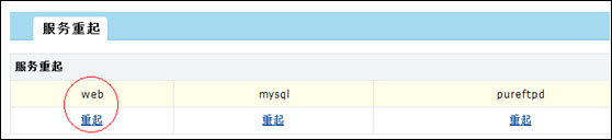 點擊“系統(tǒng)管理”——“服務(wù)重起”,選擇“web”服務(wù)重啟。如圖: