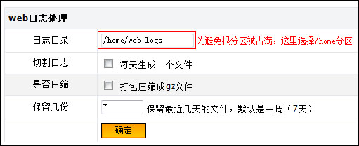 如果您站點較多,可以查詢是哪個網(wǎng)站導(dǎo)致流量過大,比較麻煩,流程如下: 系統(tǒng)默認(rèn)沒有建立日志目錄,打開“系統(tǒng)設(shè)置”——“系統(tǒng)設(shè)置”,在“web日志處理”設(shè)置一個日志目錄,建議設(shè)置為/home/web_logs ,點擊確定。如圖: