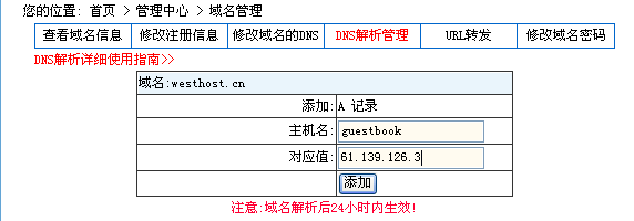 怎么添加二級域名?在我司注冊的域名支持50個二級域名。二級域名的添加跟www主域名一樣,在主機名處填入二級域名的名字,如bbs,對應值填二級域名對應的IP即可。如圖: