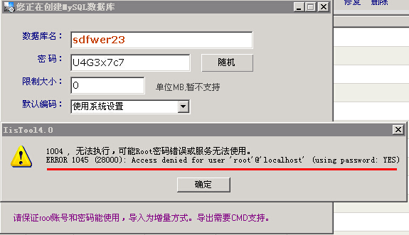 網(wǎng)站管理助手創(chuàng)建mysql數(shù)據(jù)庫(kù)失敗1.創(chuàng)建mysql時(shí)提示: