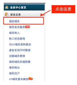2、進入會員中心后,點擊左側(cè)導航欄中的【我的域名】