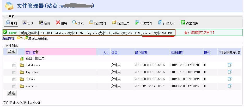 以上就是購買西部數(shù)碼虛擬主機,想要快速查看某個文件夾占用空間大小的小技巧! tips:您可以應(yīng)用到任何目錄哦,趕緊去試試吧!