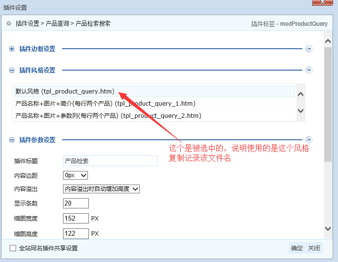 5. 點擊設(shè)置后,在插件風(fēng)格設(shè)置-查看當(dāng)前使用的風(fēng)格模板,記錄該模板文件名。