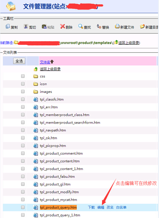 8. 點擊“編輯”可在在線修改或使用ftp連接到空間后下載至本地修改。