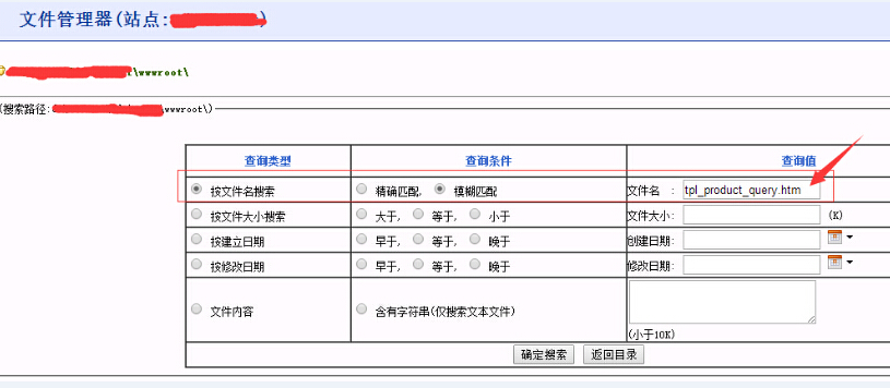 6. 進(jìn)入虛擬主機(jī)管理面板-文件管理-進(jìn)入wwwroot目錄下-查找-按文件名搜索-輸入文件名查找。
