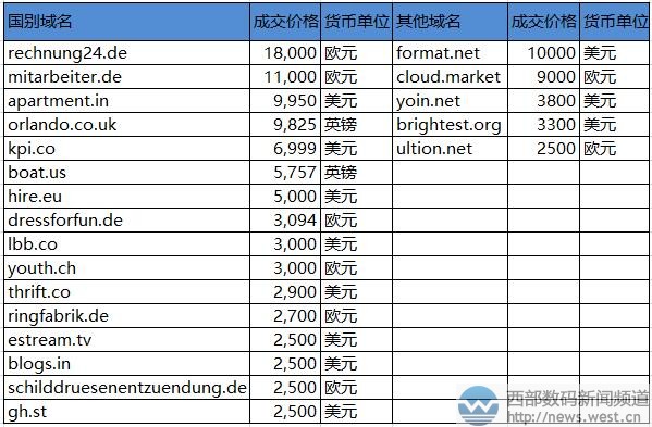 國別域名方面,兩個德國域名表現(xiàn)出眾,rechnung24.de和mitarbeiter.de分別以18,000歐元和11,000歐元結(jié)拍。其中,rechnung24.de雖是組合域名,但“rechnung”有“賬單”的意思,24又對應有24小時,適合搭建財務票務類網(wǎng)站。域名mitarbeiter.de則表示“同事、職員、雇員”的意思,在德語里也是非常通用的詞語。 其他域名中,format.net以10,000美元節(jié)拍,主體“format”有“版式、形式、安排”等意思,目前對應有,斕刈孕熊嚕╢ormatbike.cn)。另外,新頂級域名cloud.market以9000歐元成交,該域名直接代表“云市場”,對應當前比較火熱的云技術(shù)領(lǐng)域,可應用的空間較廣。 本文轉(zhuǎn)載自新聞資訊,原文鏈接:三字母ipb.com六位數(shù)領(lǐng)跑Sedo榜!數(shù)字域名7306.com緊隨其后