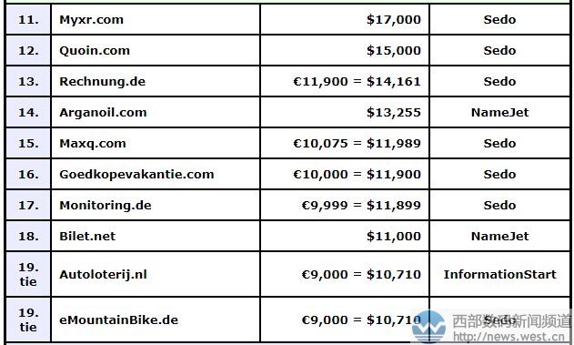 域名WMP.COM注冊(cè)于2003年7月,距今14年歷史,對(duì)應(yīng)有中文里的“完美屏、微名片、我買票、外賣品”等含義,適合搭建票務(wù)、外賣等平臺(tái)。除此以外,WMP對(duì)應(yīng)微軟媒體播放器Windows Media Player的首字母縮寫,所以微軟也是域名wmp.com的潛在終端。三聲母域名可挖掘的含義十分豐富,可與眾多終端匹配,市場(chǎng)價(jià)值頗高。 排名第二的英文域名netlife.com,成交價(jià)為75,000美元,約合人民幣49萬(wàn)元。這個(gè)域名早在1996年就已注冊(cè),距今已超20年歷史了,由英文單詞“Net(球網(wǎng))”和“Life(生活)”構(gòu)成,簡(jiǎn)單好記,適合搭建生活創(chuàng)意類平臺(tái)。據(jù)查詢發(fā)現(xiàn),相關(guān)域名NetLife.hu/.ec/.vn均已啟用建站了,由此可見(jiàn)應(yīng)用價(jià)值相當(dāng)不錯(cuò)。 隨后是以64,000美元成交的域名crypt.com(約合人民幣42萬(wàn)元),該域名有“地窖”、“加密字符”的意思,尤其是“加密”一詞,對(duì)應(yīng)當(dāng)前火熱的虛擬貨幣領(lǐng)域,很適合搭建加密貨幣交易、資訊平臺(tái)。 接著一枚長(zhǎng)尾域名sumo.com.au也拍出了50,600美元的價(jià)格,約合人民幣33萬(wàn)元。Sumo是“相撲”的意思,適合搭建相撲相關(guān)平臺(tái)。除此以外,也有不少終端以sumo命名,比如網(wǎng)站工具sumo,就啟用了相關(guān)域名sumo.com;另外一款交通仿真軟件也以sumo命名。 除了英文域名,兩個(gè)數(shù)字域名0655.com和0667.com均以29,000美元上榜,約合人民幣19萬(wàn)元。數(shù)字域名簡(jiǎn)單易記,加上建站不受限制,可廣泛用于游戲、金融、網(wǎng)址導(dǎo)航以及門戶類網(wǎng)站,應(yīng)用空間比較廣泛。 除此以外,其他域名也有不少表現(xiàn),像雙拼域名ditan.com、三字母域名LFN.com等成交價(jià)也不低,交易詳見(jiàn)下圖: