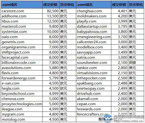 .com域名方面,本期共有五個域名超五位數(shù)成交。其中,成交價格最高的是英文組合域名carstore.com,價格為82,500美元,約合人民幣52萬元。該域名主體由單詞“car”(汽車)和“store”(商店)組合而成,很適合搭建汽車電商,應用價值不俗。目前對應有臺灣汽車百貨(carstore.com.tw)。 排名第二的是以13,500歐元成交的域名addhome.com,約合人民幣10萬元。含義上,該域名具有“加上家”的意思;應用方面,除了對應有蘇州誠品生活展以外,還有歐洲搬家公司Add home,其官網(wǎng)域名為add-home.eu。 緊隨其后的是四字母域名hbus.com,成交價為12,500美元。該域名由字母“H”和“bus”(汽車)組成,除了對應HBUS通訊技術、H-Bus 智能家居系統(tǒng)以外,也可以用于汽車類終端,畢竟“bus”一詞常見通用,用在汽車領域很有優(yōu)勢。 除此以外,masteroil.com和systemize.com分別以9,800歐元和10,000美元成交,前者有“大師油”之意;適合搭建食用油品牌;后者是“系統(tǒng)化”的意思,沒有特定的行業(yè)指向,適合多個領域建站使用。