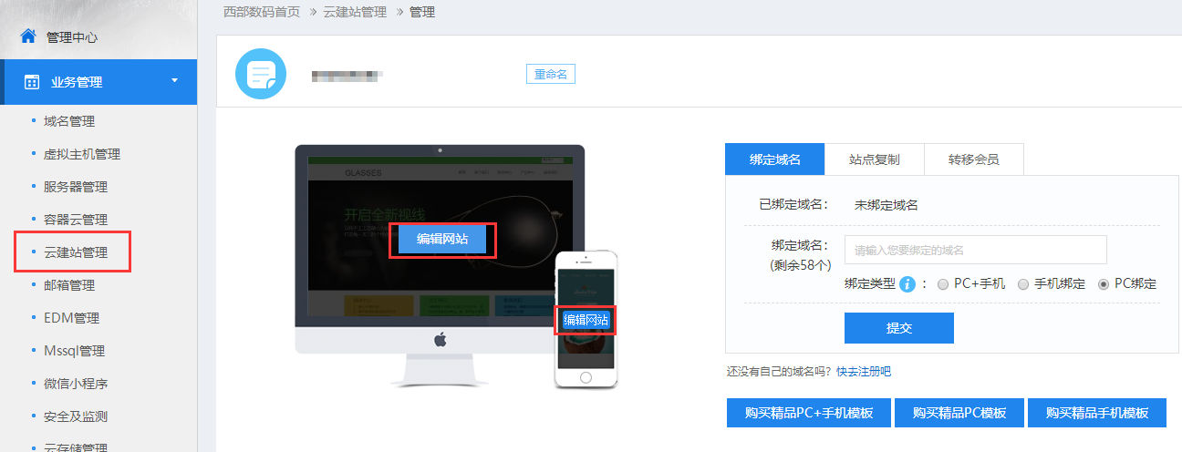 【云建站入手教程】6、云建站的基本操作和注意事項(xiàng)快捷導(dǎo)航: -------【云建站入手教程】-------- -------【云建站入手教程】-------- 1、進(jìn)入編輯的方式(有兩種) (1)方法一:請登錄會(huì)員中心,點(diǎn)擊業(yè)務(wù)管理中的云建站管理進(jìn)入。點(diǎn)擊編輯網(wǎng)站,默認(rèn)進(jìn)入前臺(tái)編輯界面