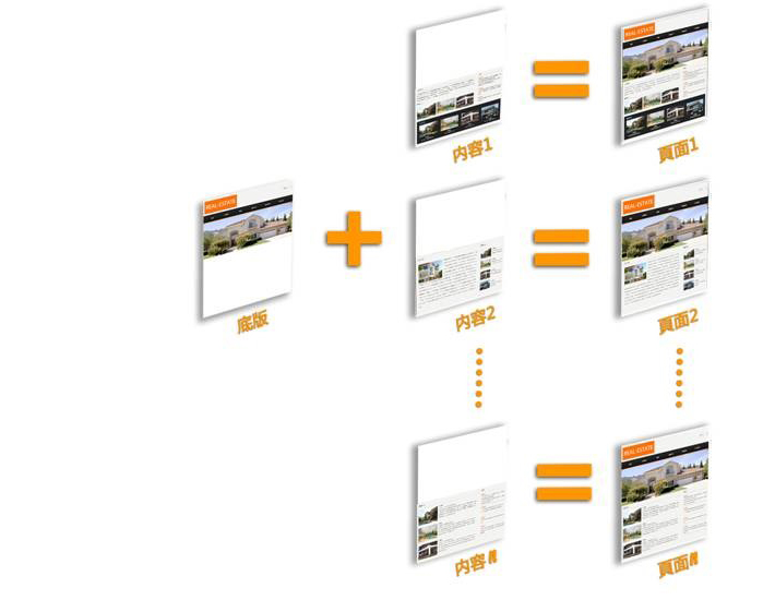 如下圖是底板和網(wǎng)站頁面組合的原理